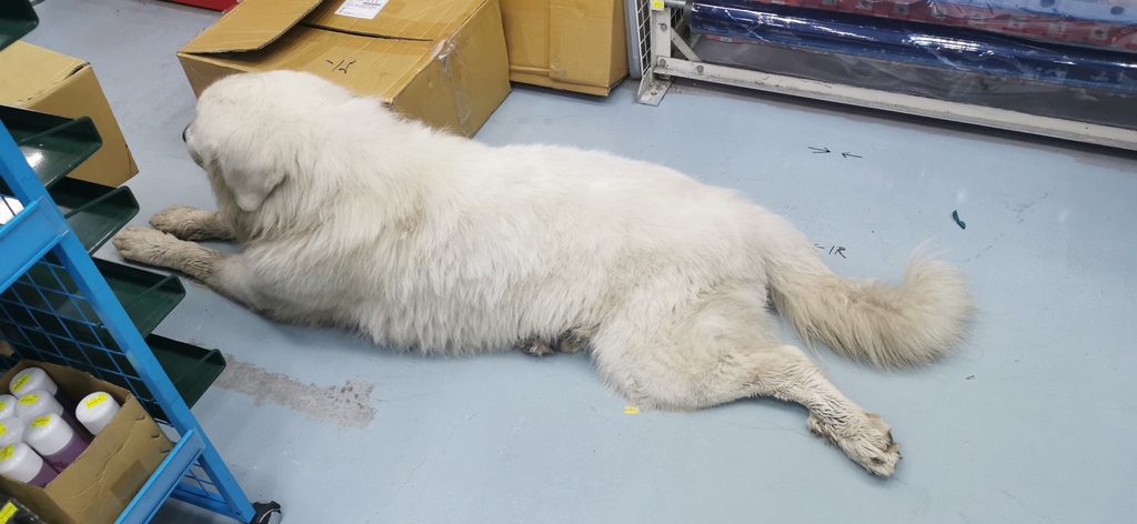 後來在新家附近遇到一隻超大的溫馴白狗,暫時先叫牠大白,之後遇到在拍給各位看,今天只能先提供背面照了![]()